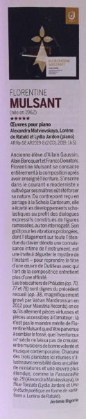 La sortie de notre album Florentine Mulsant durant ce printemps confiné a été discrète mais la presse en parle!